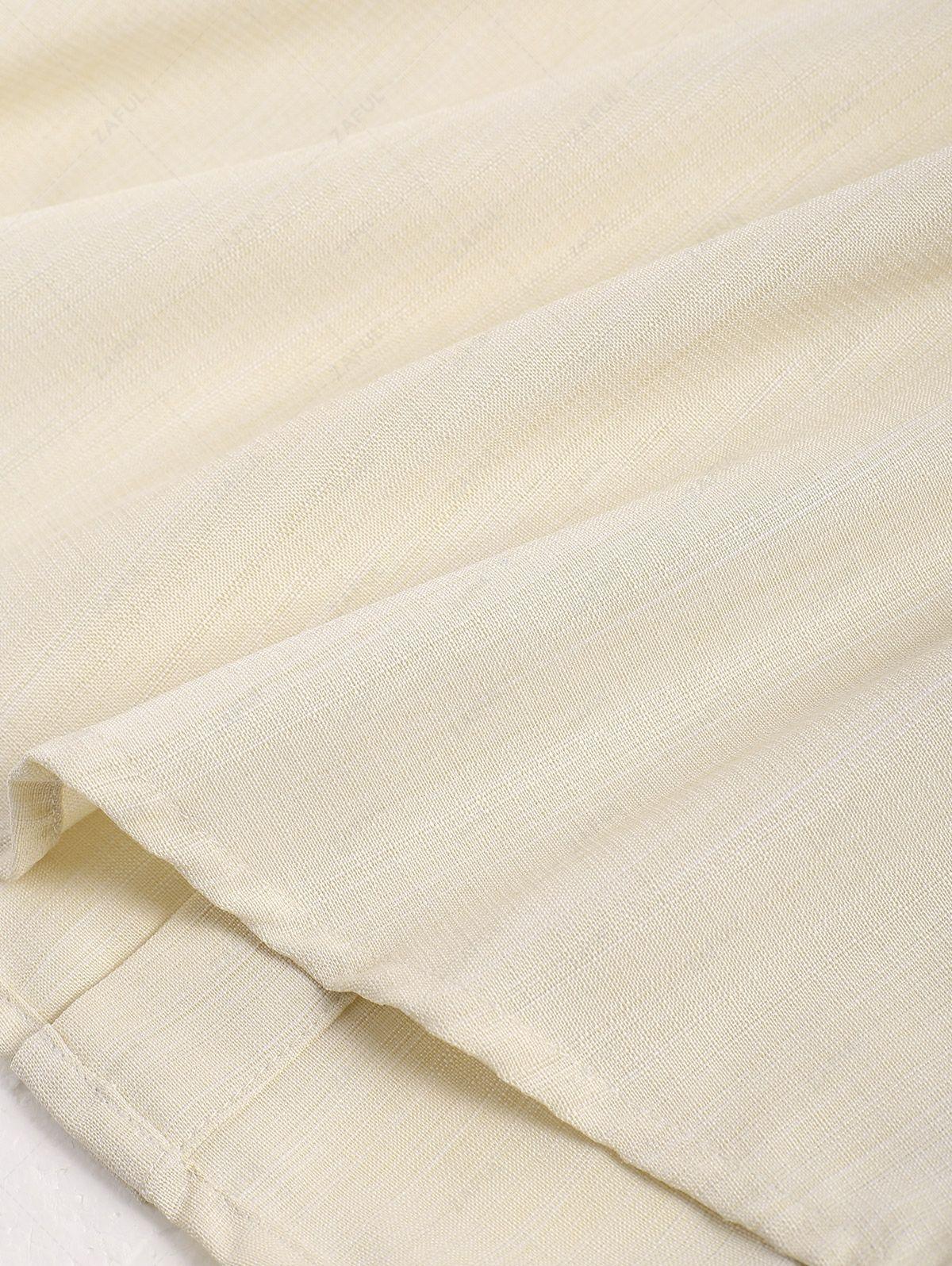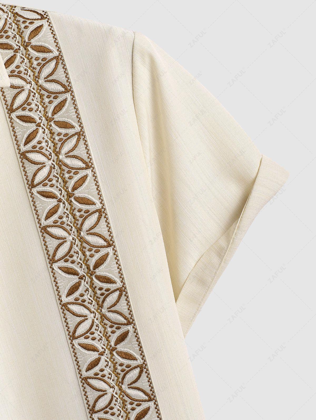 Men\'s Vintage Geometric Floral Leaves Shaped Embroidered Woven Tape Patched Button Up Short Sleeves Shirt APRICOT