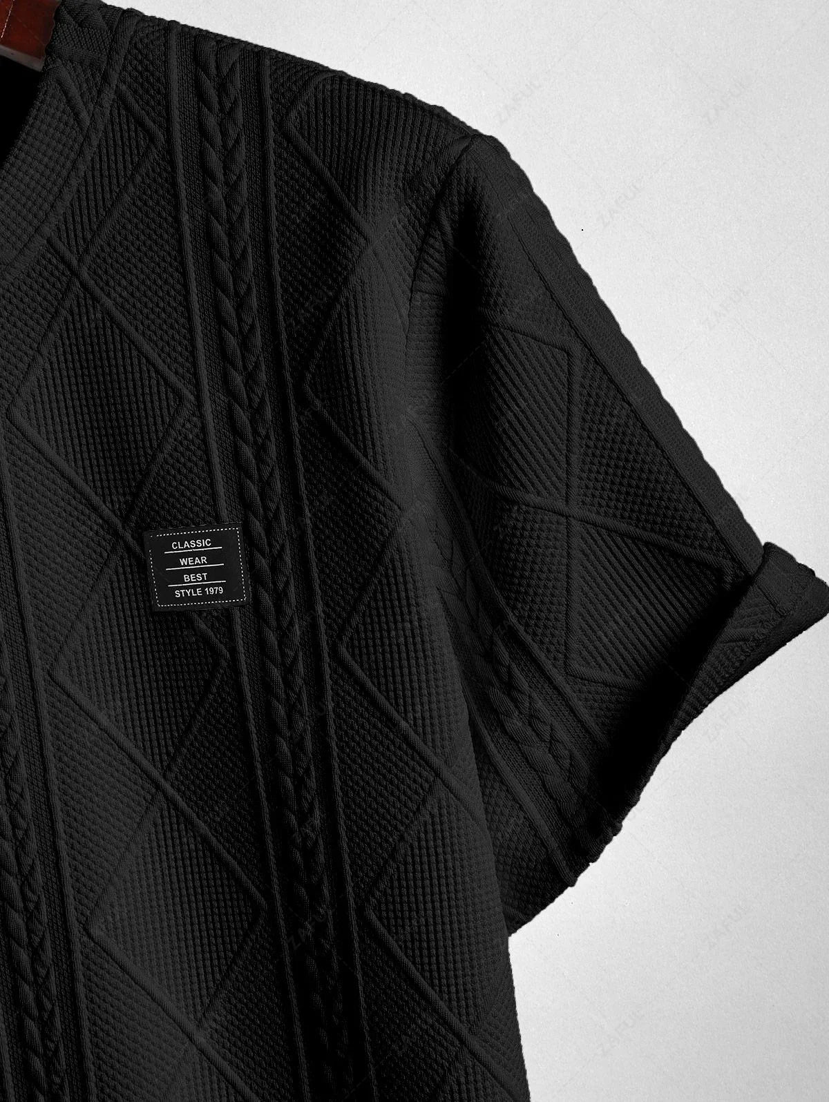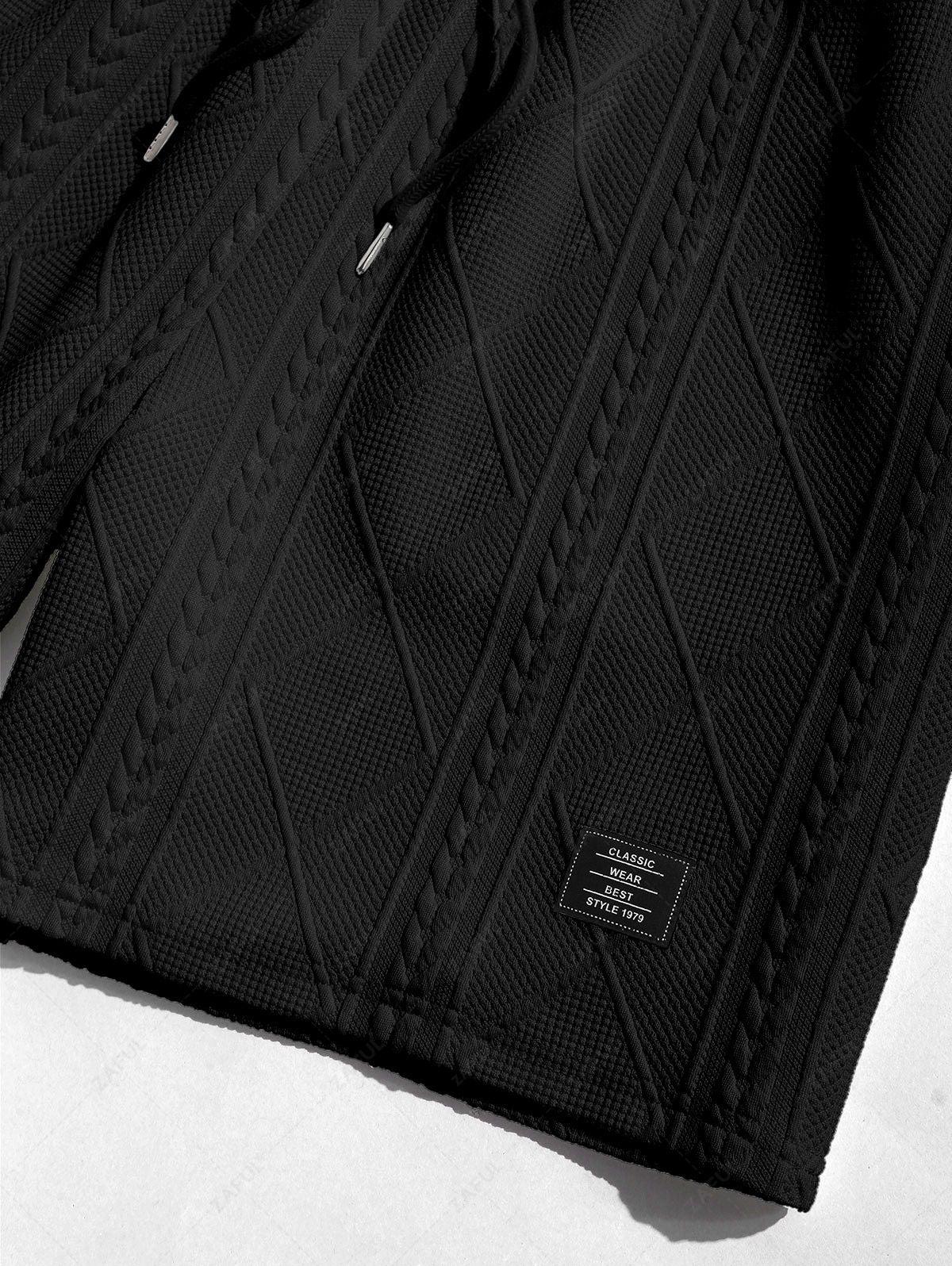 ZAFUL Men's Matching Two Piece Co Ord Crew Neck Short Sleeves Cable Geometric Jacquard Textured T-shirt And Drawstring Casual Shorts Set In BLACK | ZAFUL 2025 Type: 2 PCS Set,T-shirt&Shorts Set Style: Casual,Fashion Occasions: Daily Top Length: Regular Sleeves Length: Short Sleeves Bottom Length: Bermuda Waist Type: Mid Closure Type: Drawstring Pattern Type: Geometric,Others Decoration: Adjustable Waist,Jacquard,Pocket,Slant Pocket,Textured Material: Polyester,Polyurethane Material Stretch: Slight Stretch Season: Summer Weight: 0.6600kg Package: 1 x T-...